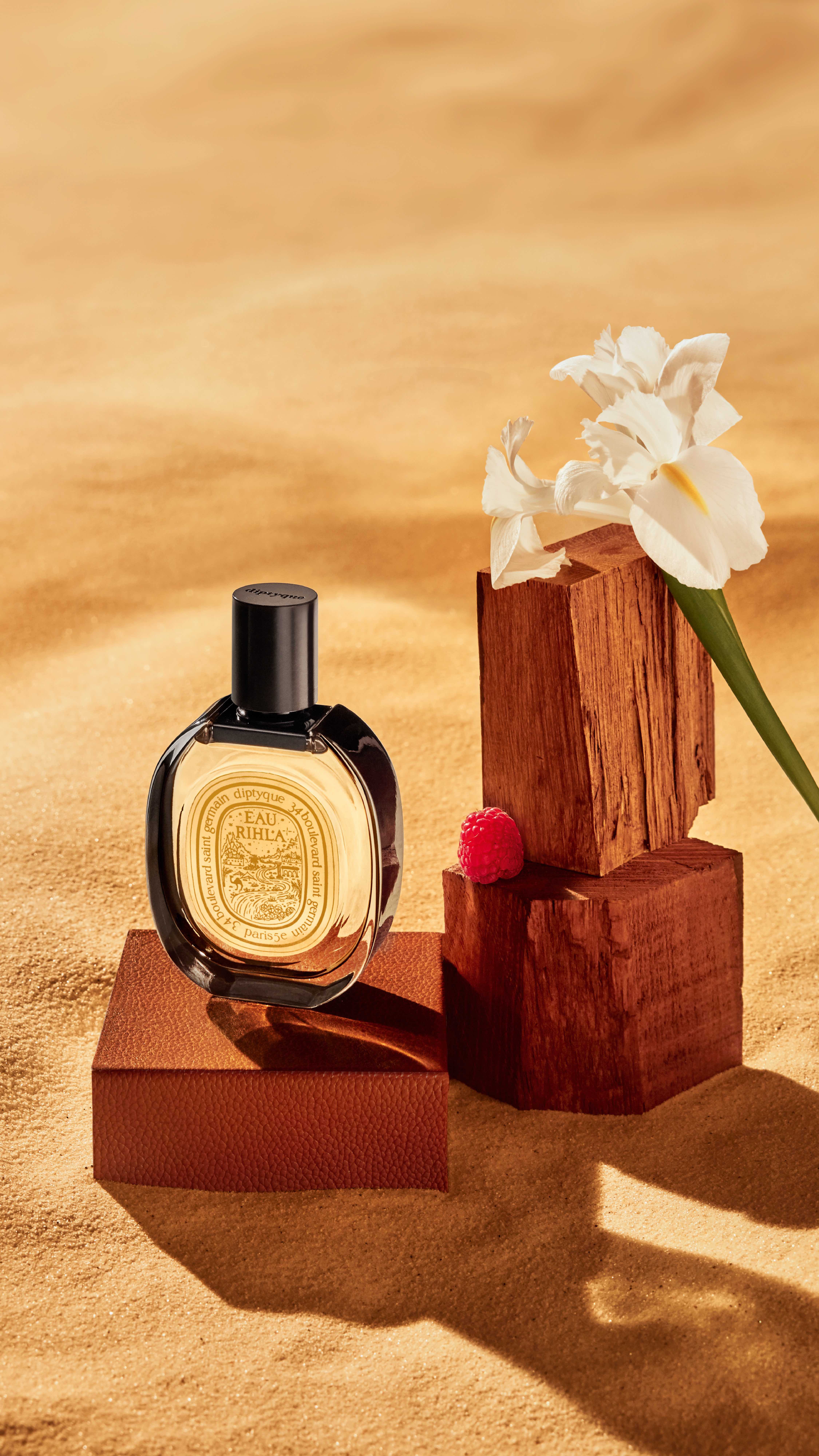 The perfumer Fabrice Pellegrin imagined the scent of a leather suitcase tinted, over the course of a journey, with the fragrances of the Middle East.